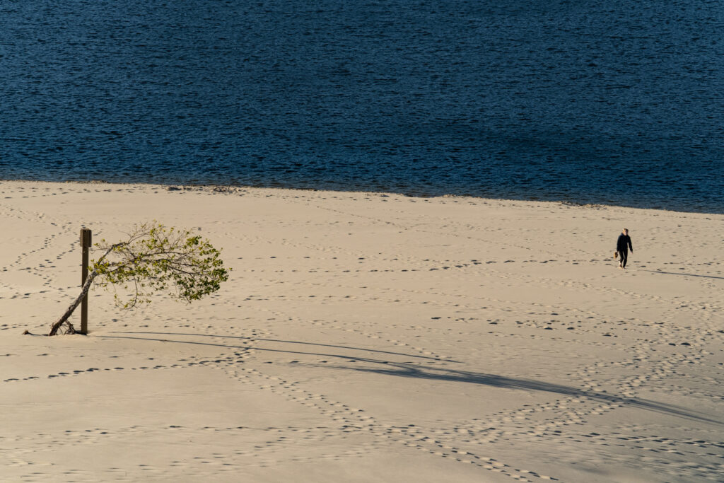 The dunes are capricious and ever-changing. And that gets in the way of highways and houses. So we plant grass to make them predictable, to hold still. And that stops the sand, covers the dunes, and endangers plants and animals. So we try to fix that, but then there’s the marten and the homes built close to the water, protected by the foredunes. Unintended consequences. Complicated.
