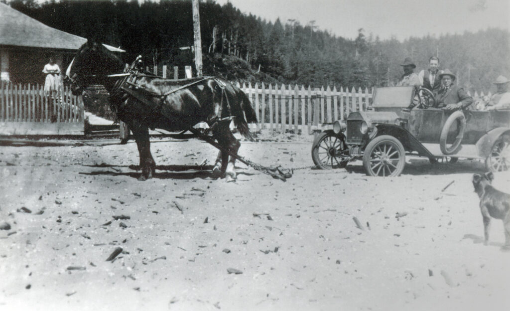 Before Route 101, there was the beach. Indigenous tribes and then the European settlers used the beach as their highway. Photos show horse-drawn carriages and even automobiles driving on the sand.